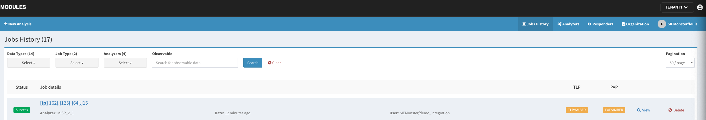 The next time you go to your observables the analyzers available for the type of observable will be adjusted accordingly. Please note that not all analyzers can process all observables. The incident response platform will automatically hide the ones that are not applicable to the type of observable.