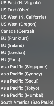 Regions supported include: