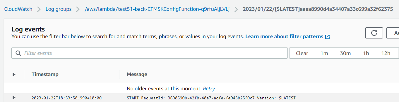 Further information regarding the reason for the failure can be found within Cloudwatch – Log groups.