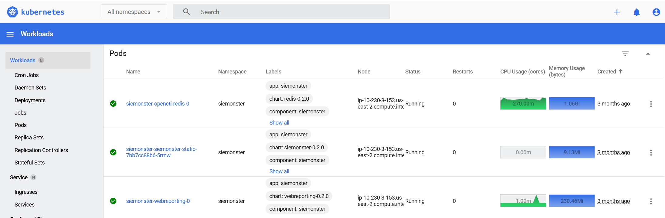 Details of Kubernetes troubleshooting may be found at https://docs.siemonster.com/current/kubernetes and at https://docs.aws.amazon.com/eks/latest/userguide/troubleshooting.html