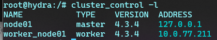 Type cluster_control -l and Press [ENTER]. You should receive an output like below.