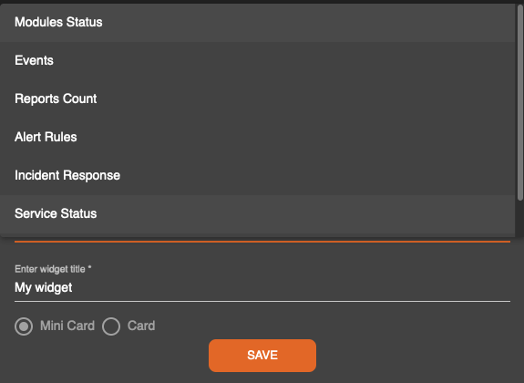 Select the preferred widget from the dropdown list, specify a name. Pick the size where applicable and Click Save