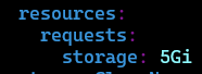 CODEkubectl -n tenant1 edit pvc persistent-storage-tenant1-misp-0Scroll down to where you see the following
