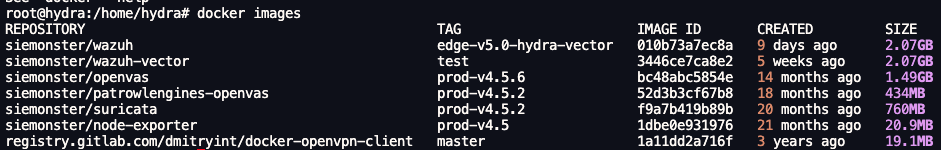 The output of the docker images command will supply you with the list of images as well as other relevant information such as their tag’s, image id, repository etc. Please note that these are quite important when raising a support incident under the support packages available.