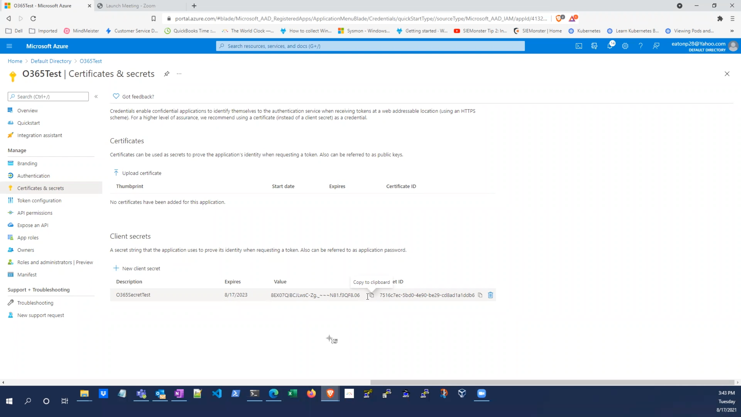 12. After the secret has been added, DO NOT navigate away from the page until you have made note of the value section of the newly created secret, this will not be visible after navigating away from this page.