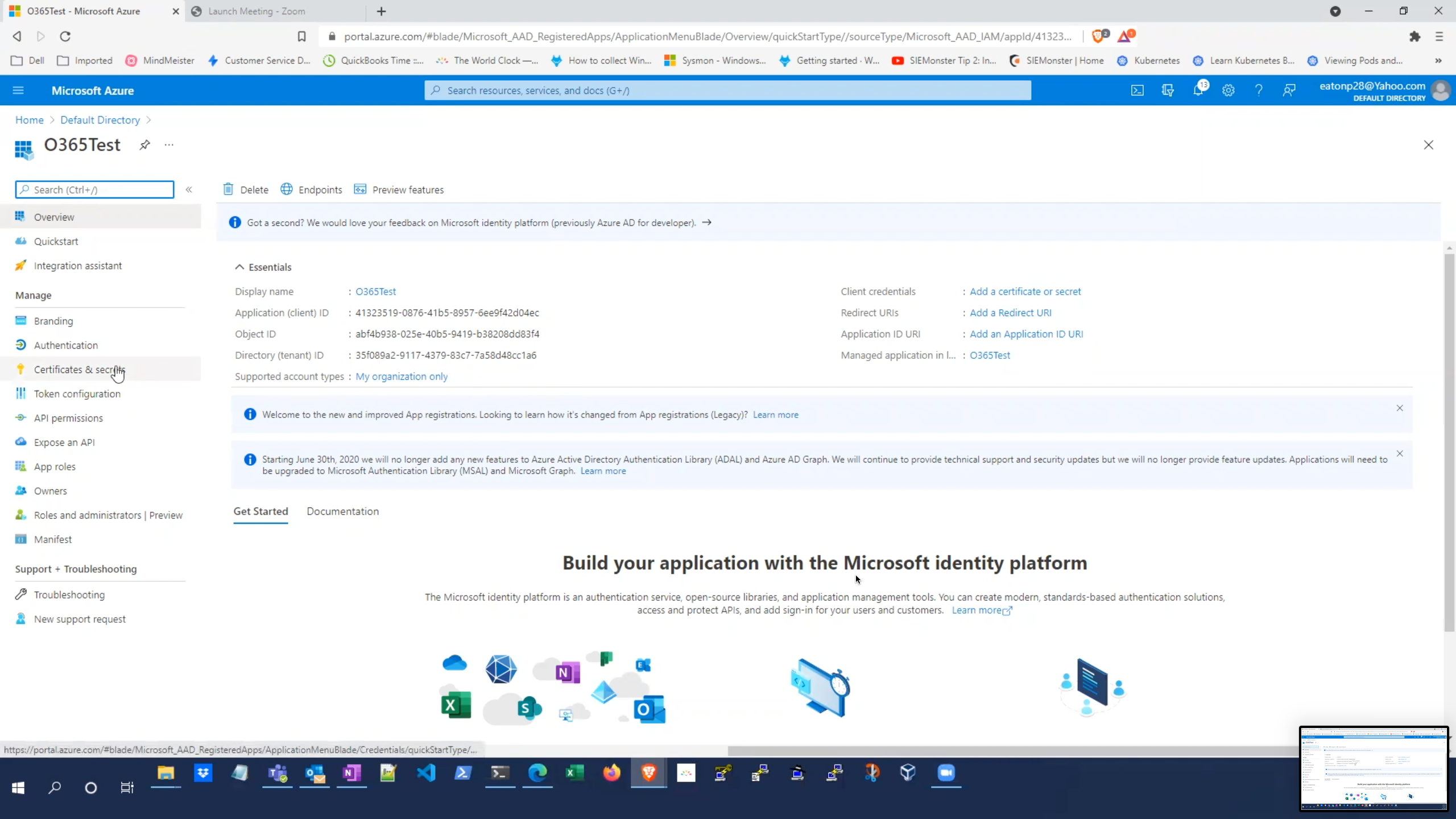 5. After you have registered, you should be presented with a screen which has two important pieces of information that we will need to copy and make a note of. The first is the Application (client) ID.