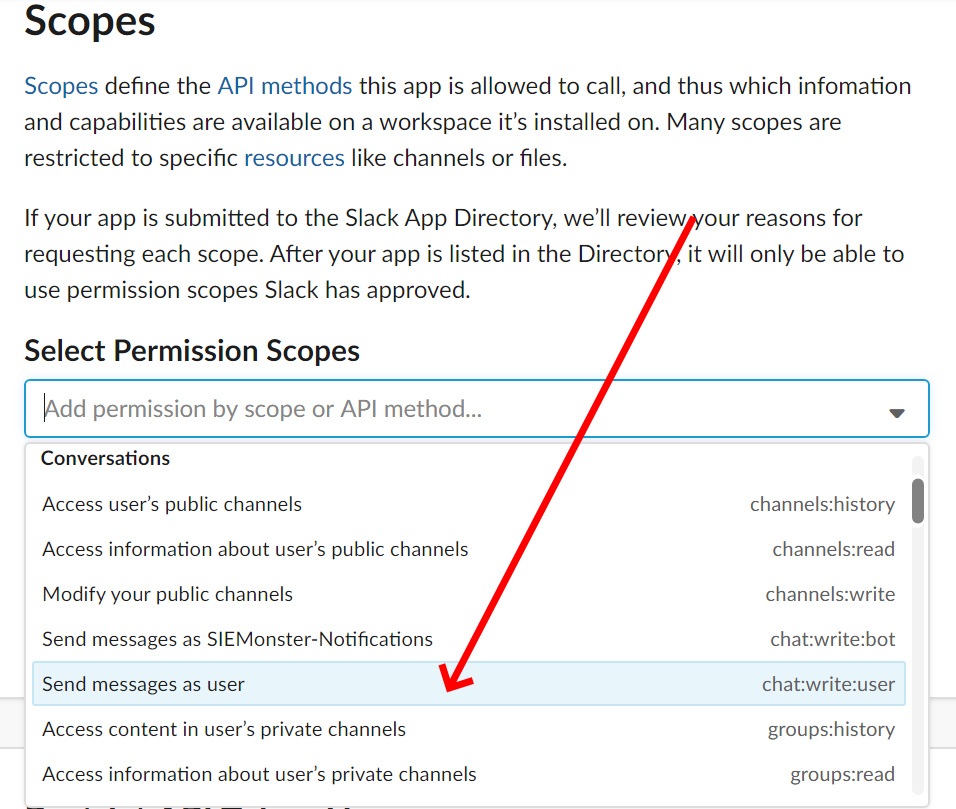 6. Scroll to "Scopes" and in the field "Select Permission Scopes" add these two values: