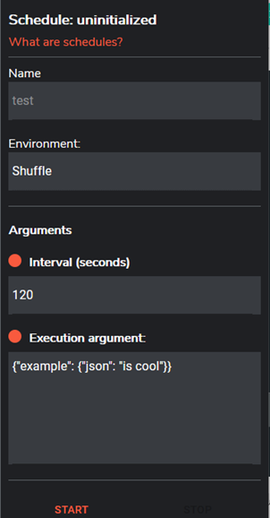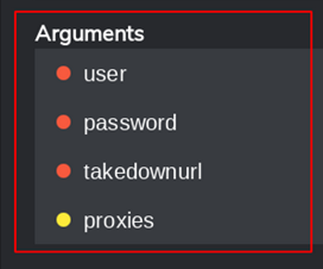 Arguments listed with the orange radio button are required, whereas the items with the yellow radio button are optional.